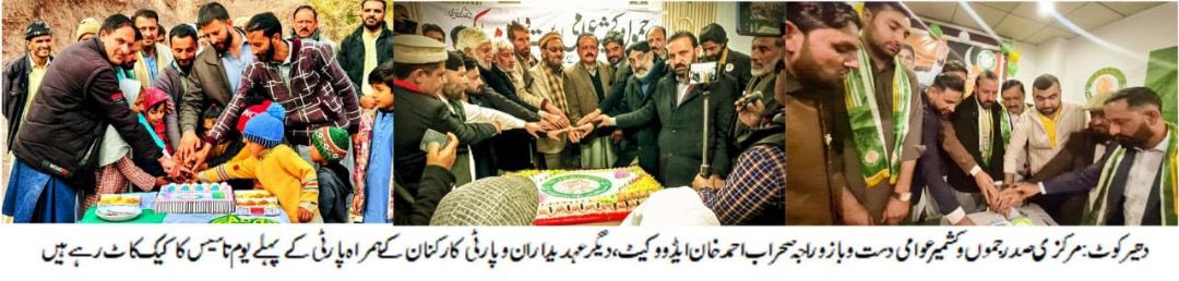 تقریب میں یوم تاسیس کا کیک بھی کاٹا گیا۔تقریب میں جموں و کشمیر عوامی دست و بازو کے مرکزی صدر راجہ سہراب احمد خان ایڈووکیٹ،سیکرٹری جنرل سردار عنصر شہزاد عباسی،سینئر نائب صدر راجہ پرویز اشرف،سینئر رہنماء راجہ ارشد،چیف آرگنائزر راجہ نواز،سرپرست اعلیٰ سردار انقلاب عباسی،صدر یوسی چمیاٹی سردار رضوان نعیم ایڈووکیٹ،صدر یوسی چوڑ راجہ عبدالرحمن،صدر ملوٹ راجہ سلیم،سابق ممبر ضلع کونسل جنت حسین عباسی،چیئرمین ترقیاتی بورڈ راجہ جمیل اکبر،سیکرٹری اطلاعات راجہ طاہر رشید،ڈپٹی سیکرٹری جنرل قاری صیاد فاروقی،چیئرمین یوسی سیسر حافظ عادل شمیم،سیکرٹری جنرل یوتھ سردار عامر افتخار عباسی، محسن عباسی،راجہ امتیاز، سمیت دیگر عہدیاران اور کارکنان نے بڑی تعداد میں شرکت کی۔