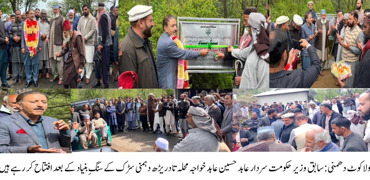 راولاکوٹ:دھمنی روڈ کے سنگ بنیاد کے موقع پر عوام علاقہ کی بھرپور شرکت نے اس منصوبے کو عوامی امنگوں کی ترجمانی بنا دیا۔ تقریب کے مہمانِ خصوصی سابق وزیر حکومت سردار عابد حسین عابد تھے، جنہوں نے باقاعدہ افتتاح کرتے ہوئے منصوبے کو علاقے کی ترقی کی جانب ایک اہم سنگ میل قرار دیا۔