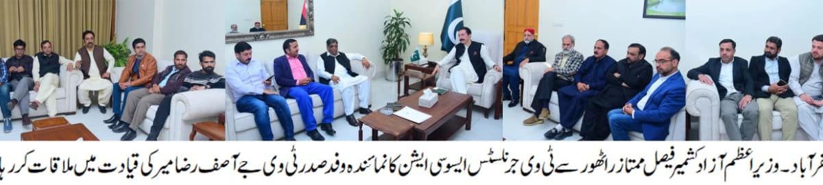 ٹی وی جرنلسٹس ایسوسی ایشن آزاد کشمیر کے صدر آصف رضا میر کی سربراہی میں وزیراعظم آزاد کشمیر راجہ فیصل ممتاز راٹھور سے ملاقات