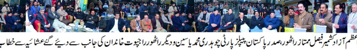 اپنے خطاب میں وزیراعظم آزاد کشمیر فیصل ممتاز راٹھور نے کہا کہ کوٹلی کے راٹھور خاندان سے ان کے والد محترم کا گہرا تعلق رہا ہے ، یہ وقت آزمائش کا ہے، میرے والد کو نو ماہ کی حکومت ملی جسے آج بھی لوگ یاد کرتے ہیں جبکہ مجھے آٹھ ماہ کی مدت ملی ہے۔ جب ہم نے حکومت سنبھالی تو ریاست میں افراتفری کی صورتحال تھی، ایسے میں ہم نے ذمہ داری قبول کی۔وزیراعظم نے کہا کہ یہ حکومت ہمارے لیے ذمہ داری بھی ہے اور آزمائش بھی۔ وہ مسائل جن کی وجہ سے عوام سڑکوں پر تھے، ہم نے ان کے خاتمے کے لیے اقدامات کیے ہیں۔ یقین دلاتے ہیں کہ محدود وسائل کے باوجود عوامی مسائل حل کیے جائیں گے اور ان کے حل میں میری طرف سے کسی قسم کی تاخیر نہیں ہو گی۔ میری کوشش ہو گی کہ جب میں یہاں سے جاؤں تو مایوسی کے بادل چھٹ چکے ہوں۔