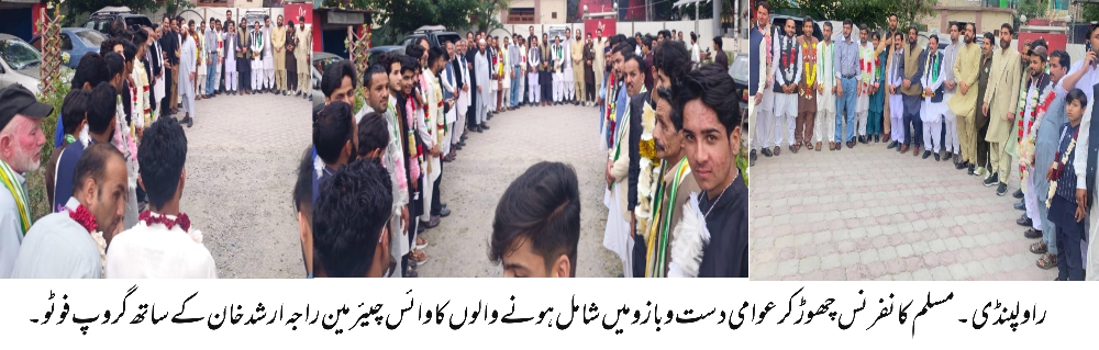 صدر یوتھ ونگ راولپنڈی اسلام آباد راجہ بلال کی کاوشوں سے راجہ محمد عبدالرزاق خان،راجہ محمد عباس خان،راجہ محمد نذیر خان،راجہ خورشید خان،راجہ جاوید خان،راجہ افریداد خان،راجہ خالد خان،راجہ وسیم خان،راجہ بلال خان،راجہ حنیف خان،راجہ ریاست خان،راجہ توصیف خان،راجہ شاھد خان،راجہ حمد افراق خان،راجہ اسرار خان،راجہ اکرام خان،راجہ گلفراز خان،راجہ عاصم خان،راجہ مقصود خان،راجہ عمیر خان،راجہ زین،راجہ ارشد علی،راجہ نعیم احمد خان،راجہ اسار خان،راجہ امتیاز خان،راجہ محمد علی خان، راجہ شیر بلال،راجہ محمود احمد خان،راجہ شکیل احمد،راجہ زبیر خان،راجہ عادل خان،راجہ عابد خان،سمیت بڑی تعداد میں مسلم کانفرنسی کارکنان نے باضابطہ جموں و کشمیر عوامی دست و بازو میں شمولیت کا اصولی فیصلہ کیا۔