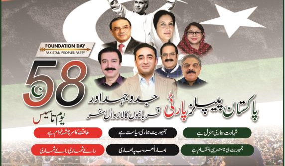 آزادحکومت ریاست جموں کشمیر نے پاکستان پیپلز پارٹی کے 58 یوم تاسیس پر پارٹی کی قربانیوںکو خراج تحسین پیش کر دیا